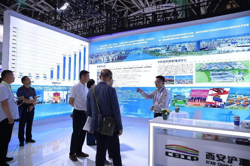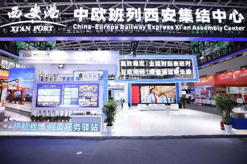 走进位于西安国际会展中心展览馆6号馆的交通物流展区,西安浐灞国际港展位上蓝色的集装箱、四通八达的中欧班列(西安)线路展示等园区核心特色吸引着人们的目光。