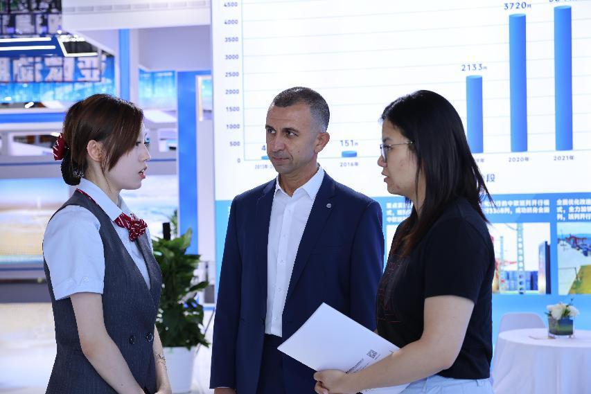 展台通过视频介绍、可视化线路展示和清晰明了的业务介绍展板等,集中呈现了中欧班列(西安)的全球网络布局、税收政策创新成果及园区产业集群发展图景。“西安浐灞国际港交通物流展台主要展示四大板块,分别是中欧班列西安集结中心发展历程、税务服务便利化、产业融合发展成果、对外开放资源体系。”西安自贸港建设运营有限公司副总经理张冰馨介绍道,此次展台既展示了中欧班列(西安)的通道优势,也展示了园区产业发展前景。