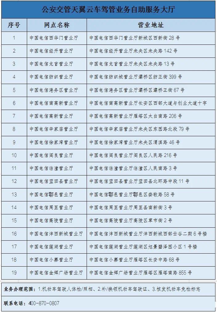 节日期间,19处公安交管天翼云车驾管业务自助服务大厅,也可为广大驾驶员提供机动车驾驶人体检/照相、补/换领机动车驾驶证、核发机动车免检标志等业务的一站式业务自助办理服务,办理业务时间与电信营业厅工作时间同步。