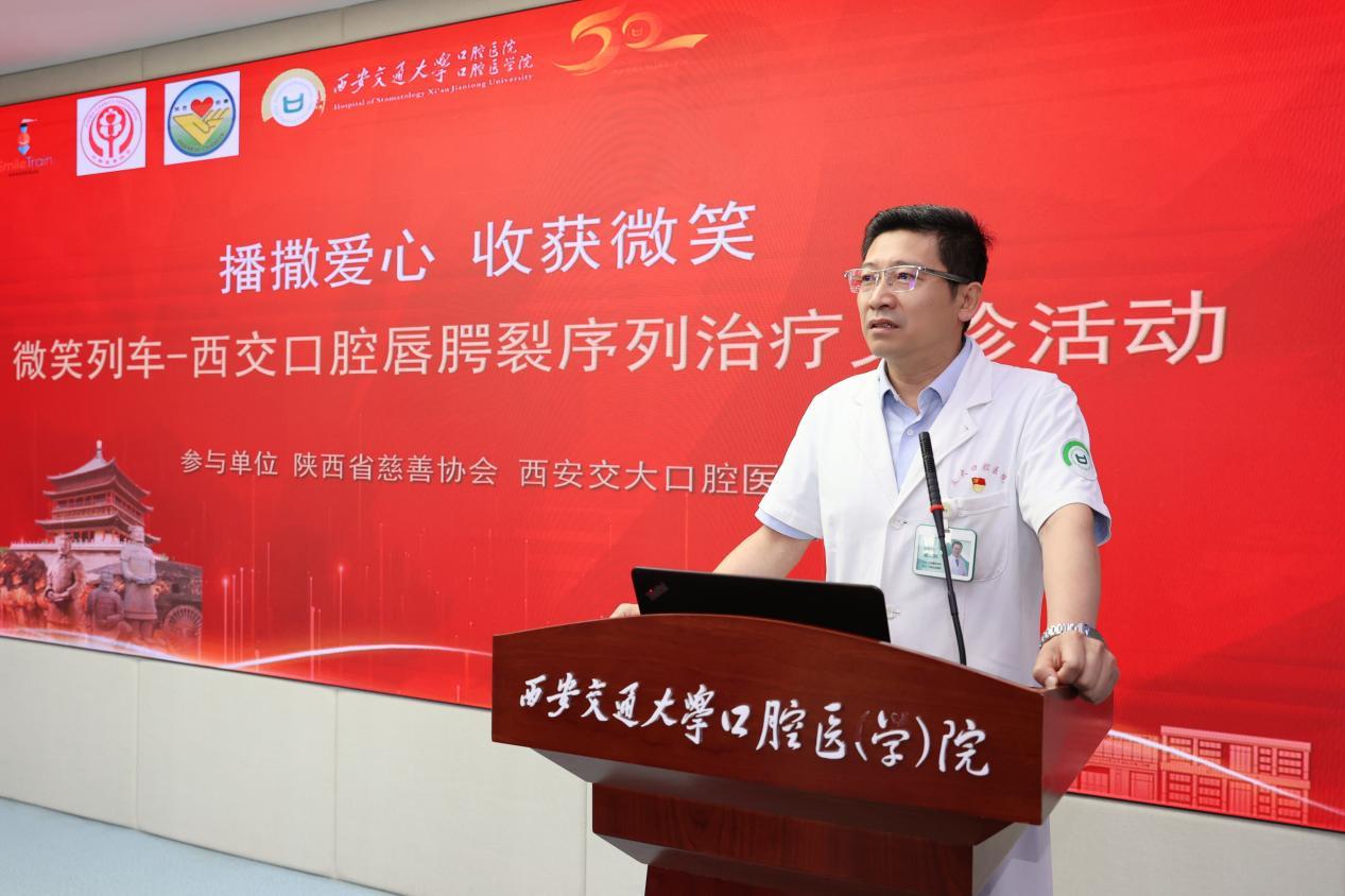 5月29日上午,西安交通大学口腔医院再次践行公益初心,举办“微笑列车”公益义诊活动,为先天性唇腭裂患者以及既往有唇腭裂修复手术史的患者,带来了专业且温暖的医疗服务。此次活动由西安交通大学口腔医院唇腭裂外科主任任战平主持,陕西省慈善协会副会长戴士芳、西安交通大学口腔医院屠军波副院长出席活动。