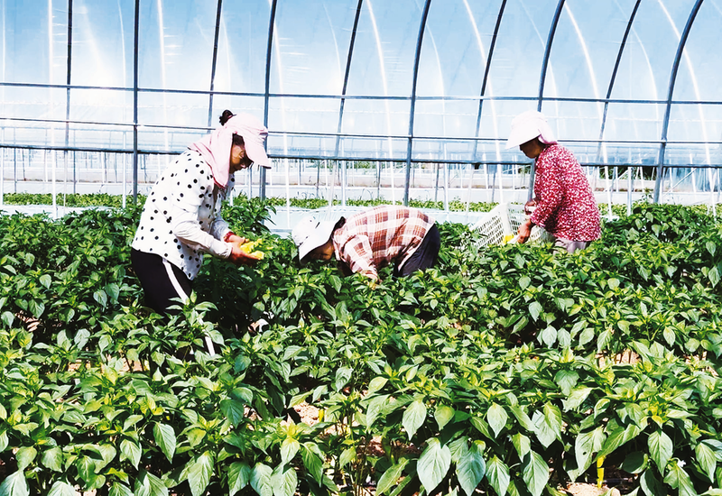 九丰种植农民专业合作社务工人员在采摘辣椒
