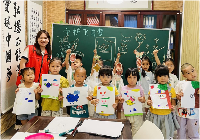 “哇!小朋友画的这只鹦鹉好漂亮!”6月17日,鹿苑街道上林社区新时代文明实践站开展“执笔勾勒飞鸟,守护天空精灵”新时代文明实践主题活动。活动现场,绘画老师耐心地为孩子们讲解绘画技巧,从飞鸟的轮廓勾勒到羽毛的色彩填充,每一个步骤都细致入微,带领小朋友们走进鸟类的奇妙世界,用画笔描绘对自然的热爱。此次活动不仅激发了小朋友们的绘画兴趣和创造力,更在他们心中种下了爱护鸟类、保护环境的种子。