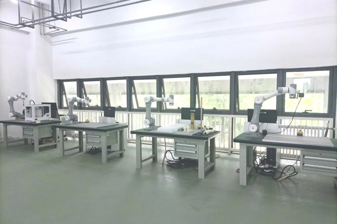 主要进行智能Magician机械臂模块、CR5工业机械臂模块类别的机器人实验,可进行机器人基本结构、技术参数及末端执行器设计更换、示教再现、3D打印功能、工业机器人示教编程及图形化编程、工业机器人视觉检测等多种实验,用以提升教师和学生实验操作能力。