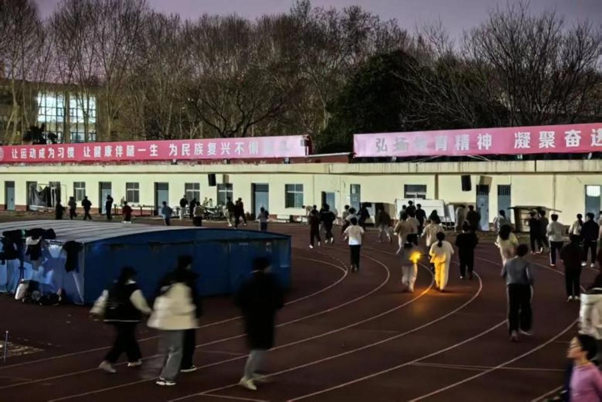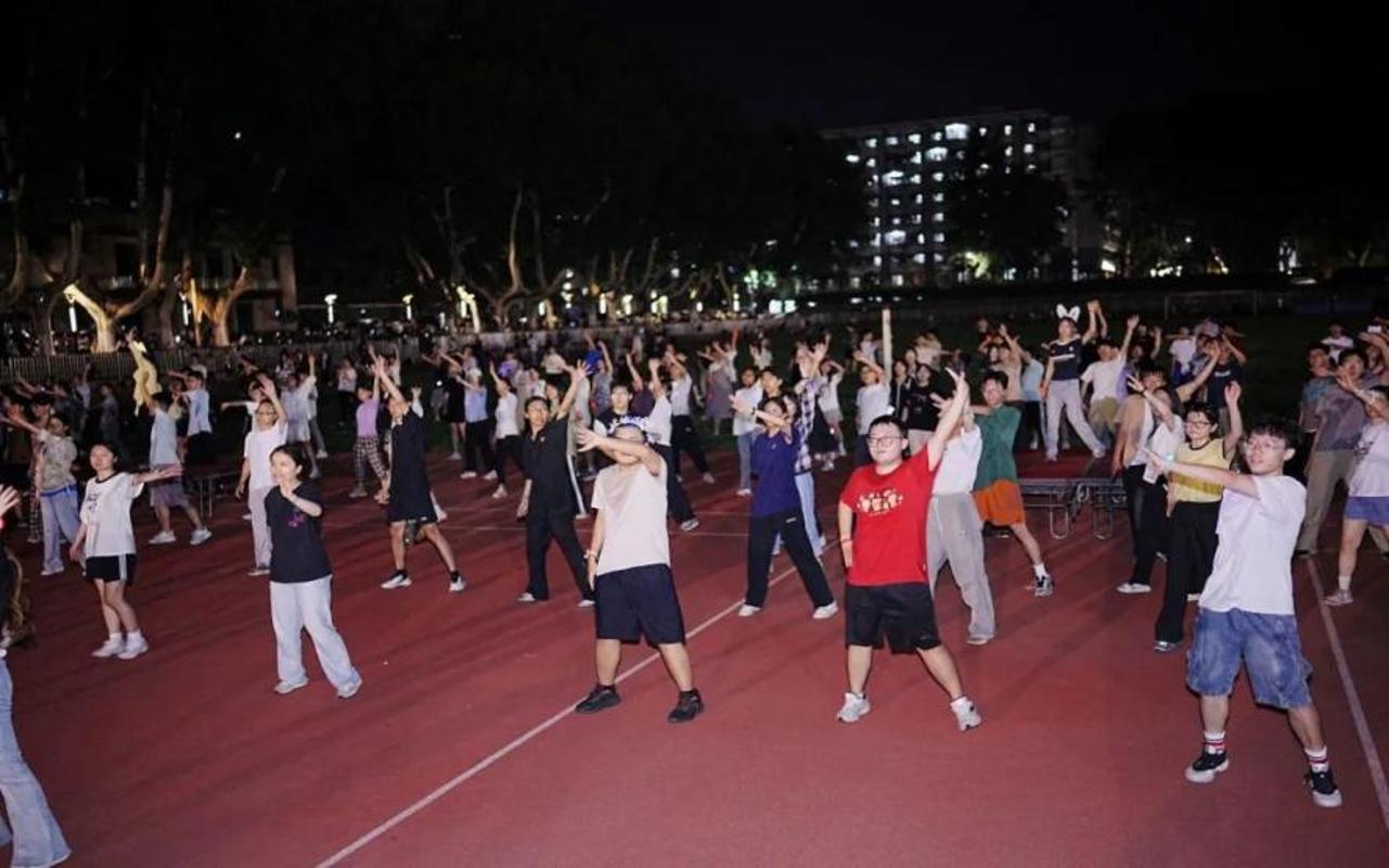 校园操舞赛场同样精彩纷呈。啦啦操队员舞动花球,动作动感十足;瑜伽选手专注呼吸,舒展身心;艺术体操表演者姿态优雅,灵动飘逸;健美操队员活力跳跃,激情四射,各类操舞展现出学子们的多元风采。夜幕降临,兴庆校区东南足球场被彩色灯光与动感音乐点亮。“嗨跳・仙交”广场舞活动中,数百名师生随着旋律舞动,荧光手环在夜空中组成璀璨星河。