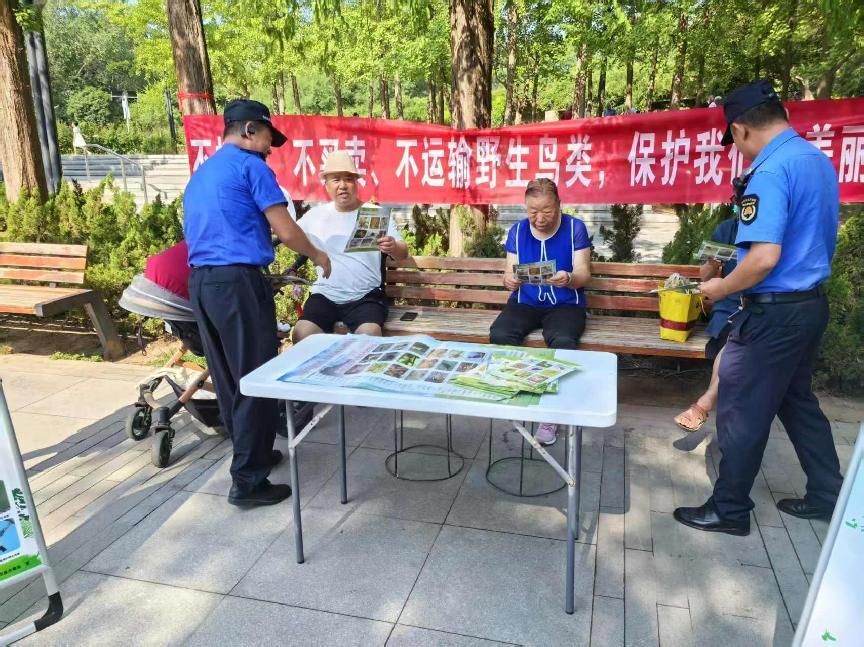 为推动野生鸟类保护工作常态化、长效化,进一步强化全民爱鸟护鸟责任意识,厚植知法守法的法治理念,6月28日上午,西安高新区自然资源和规划局联合城市管理和综合执法局、街办及社区,在新纪元公园、木塔寺公园、洨河公园、博文路绿地等公园绿地人流密集区域同步开展"爱鸟护鸟"普法宣传活动,织密野生鸟类保护的社会宣传网络。