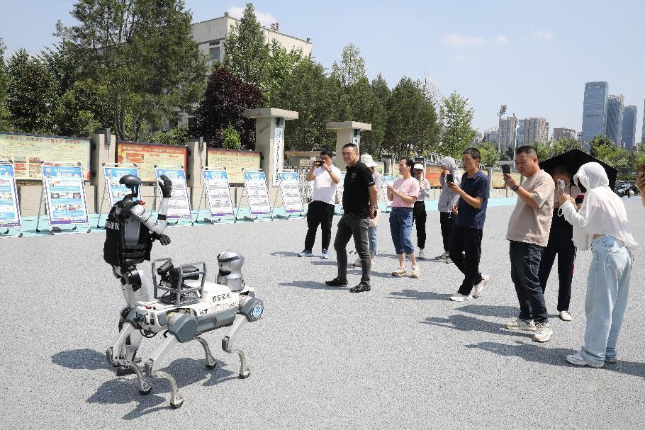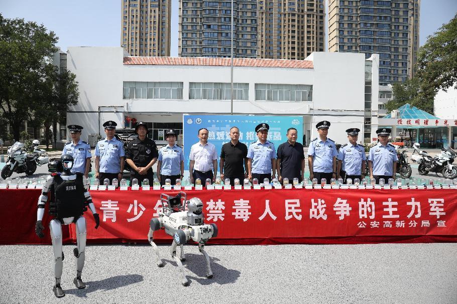 “滥用麻精药品就是吸毒,拒绝药物滥用,从你我做起。健康人生,绿色无毒。”6月26日,在陕西省体育训练中心,西安市公安局高新分局(以下简称:公安高新分局)的机器狗和机器人向来往的运动员和教职工“喊话”,吸引了大家纷纷驻足。