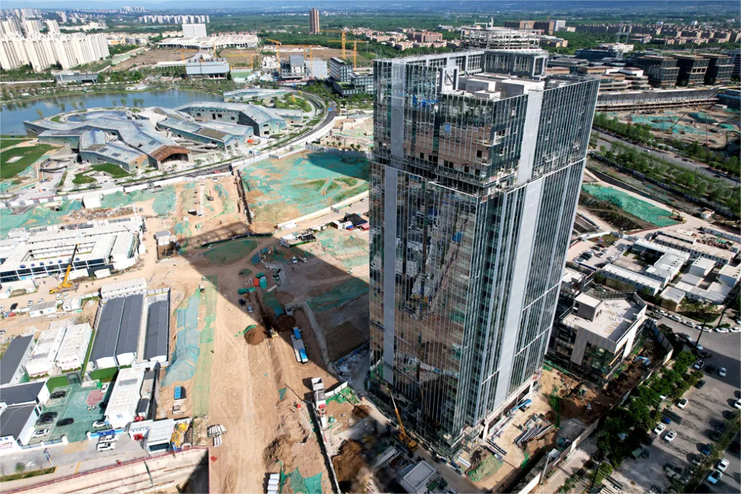 中铁盈创中心项目经理周昊:“项目主体结构全面封顶,外立面幕墙工程完成90%,消防工程完成95%,内部工区精装修也基本完工,预计今年年底将全面竣工,明年年初正式投入使用。中铁盈创中心未来将会是高新三期未来之瞳环瞳总部集群首个交付的项目,为区域发展注入新的活力。”
