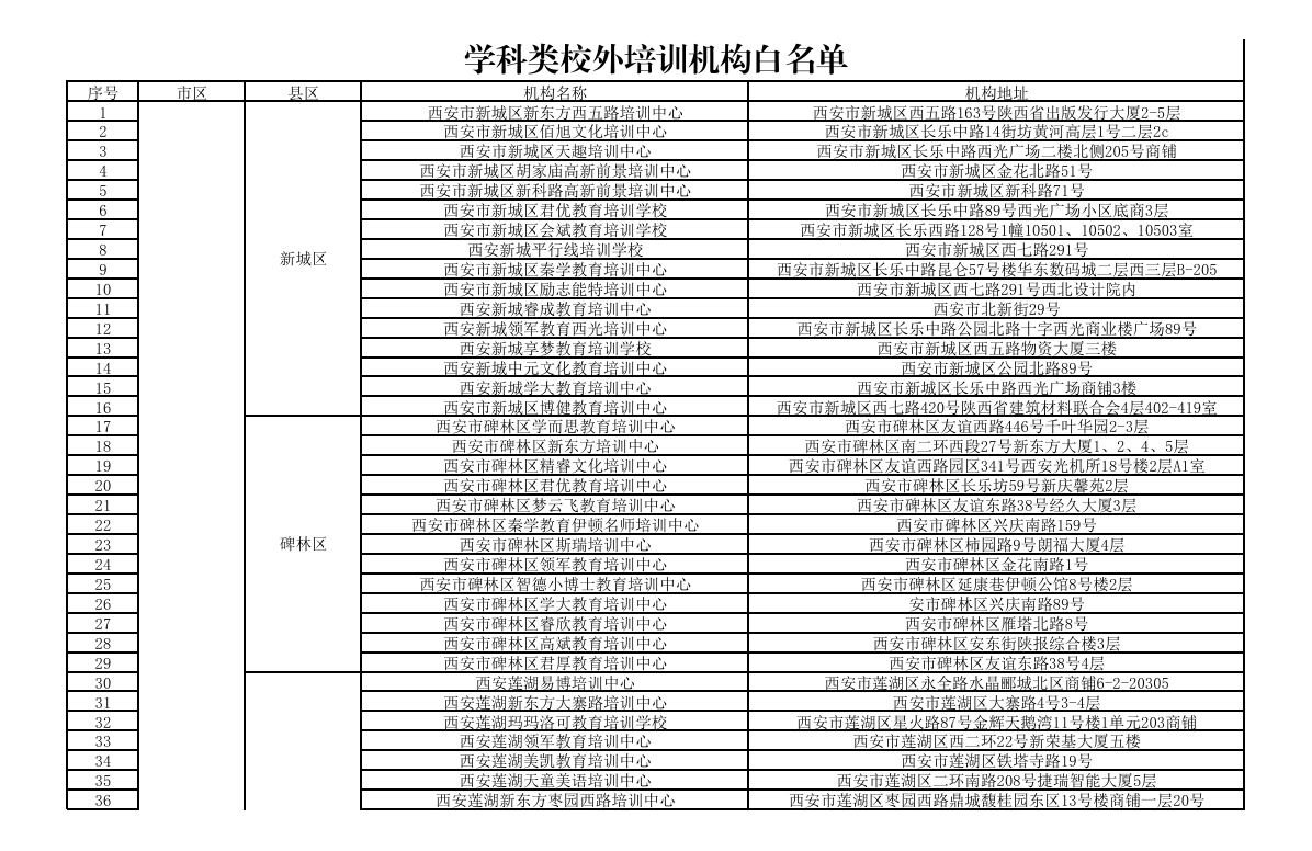 陕西省校外培训机构部分“白名单”: