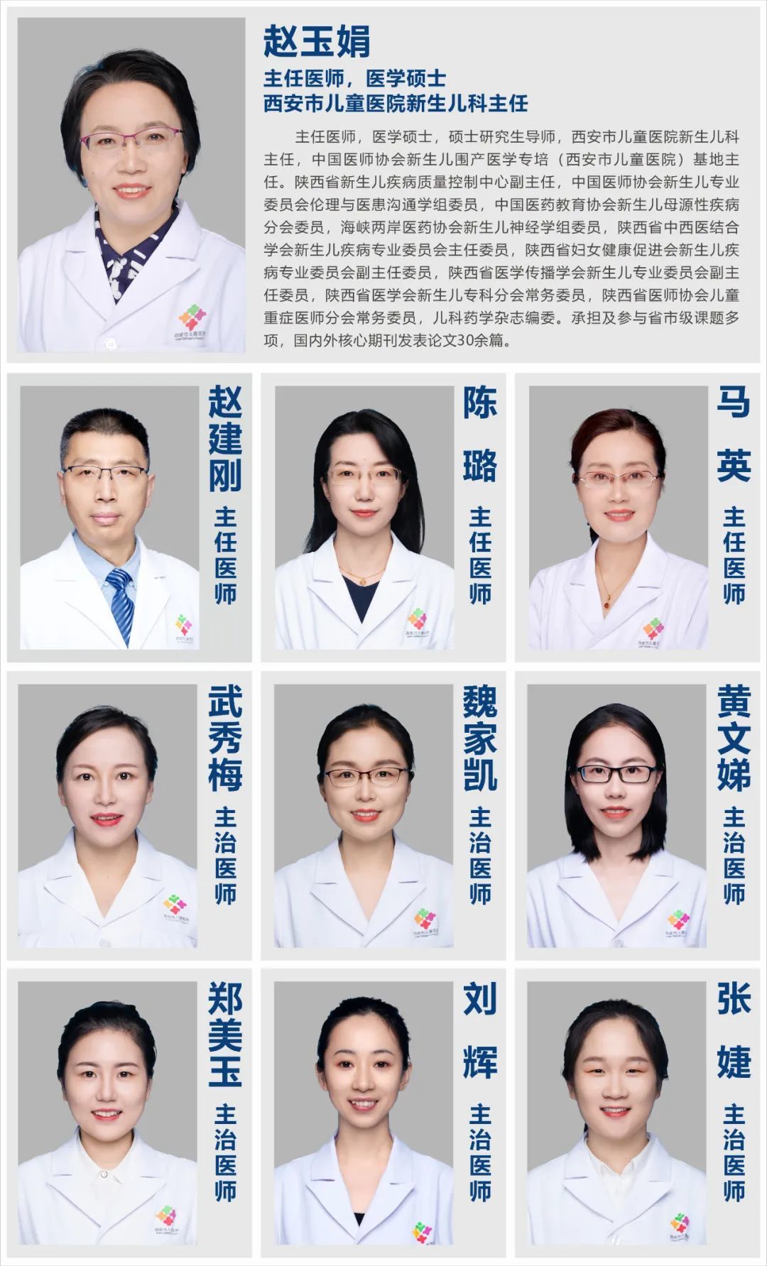 西安市儿童医院新生儿科成立于20世纪80年代,目前由新生儿重症医学科、新生儿科病区、新生儿外科病区、新生儿内科门诊、新生儿外科门诊、新生儿随访门诊、新生儿健康体检门诊、新生儿转运团队共同组成新生儿中心。本中心是中国医师协会新生儿围产期医学专科培训基地(西安市儿童医院)、国家新生儿临床重点专科、陕西省第一批省级临床重点专科、西安市新生儿疾病重点专科、陕西省和西安市危重新生儿救治中心、陕西省新生儿专科医生培训基地,是最有影响力的新生儿危重症救治中心之一。承担着陕西省及周边地区新生儿的医疗保健任务。