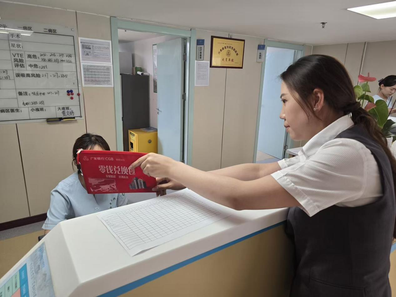在上门为大兴医院办理业务时,广发银行西安曲江新区支行了解现金支付方面痛点。医护人员反映,部分老年患者习惯使用现金就医购药,但因零钱储备、破损人民币处理等实际困难,常面临找零难题,影响患者就诊体验。该行工作人员敏锐捕捉到这一需求,主动推出“零钱包”现金服务方案,能根据医院门诊流量及支付场景,提供“零钱包”定制、零钞兑换、残损币回收等服务,助力医院优化现金管理。