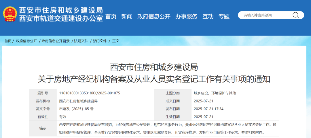 日前,西安市住房和城乡建设局发布关于房地产经纪机构备案及从业人员实名登记工作有关事项的通知,具体内容如下。