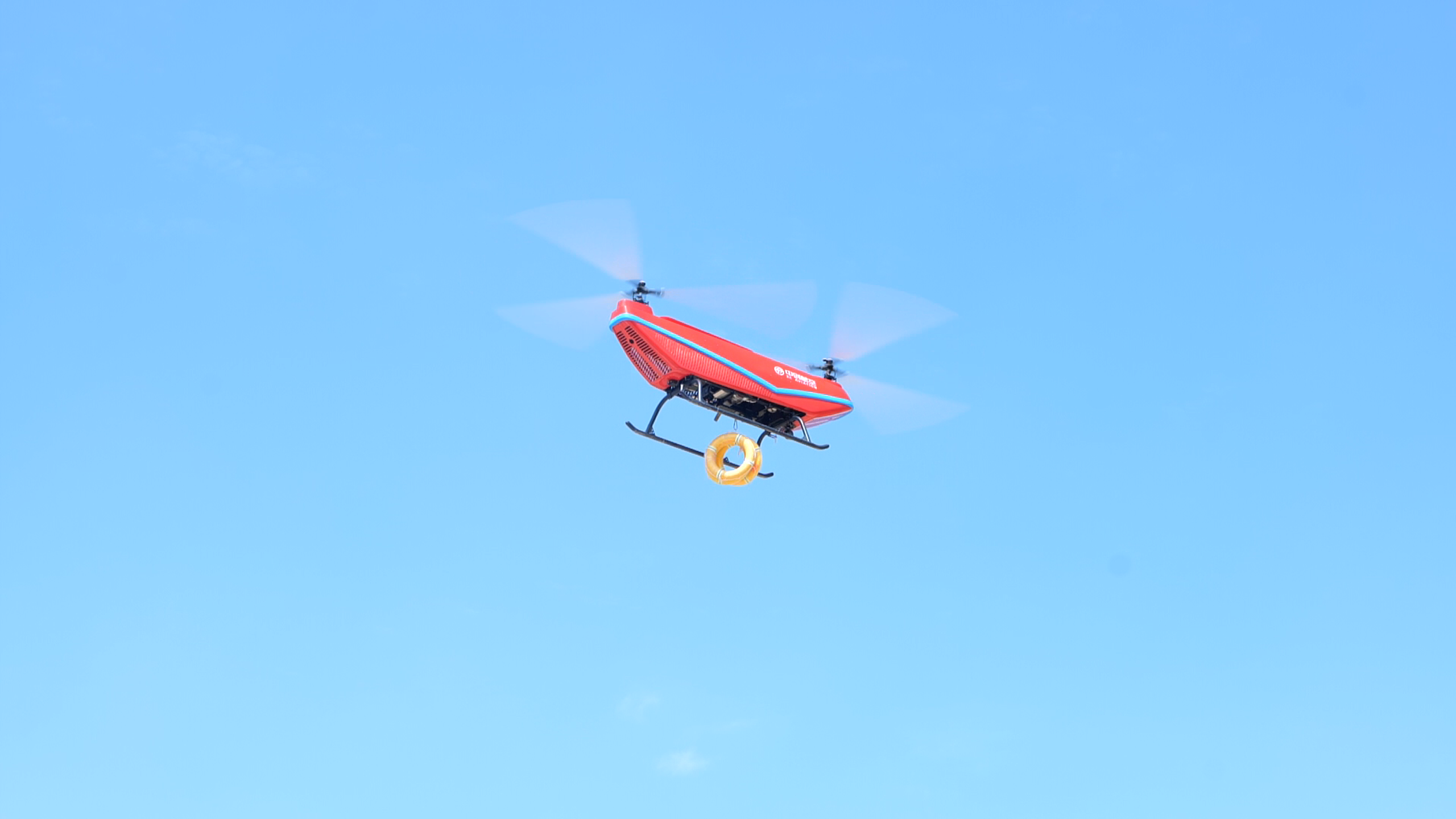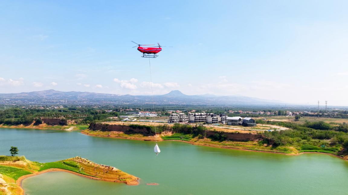 上午10点,一声指令下达后,无人机“家族”各显神通:T100、T70P 多旋翼无人机的四组螺旋桨由慢及快转动,带起轻微气流,机身平稳离地后迅速攀升,在微风中稳如磐石,下方喷头精准喷出雾状药剂,完成 “一喷三防”、果树病虫害防治及河道巡检工作。而 ZC500 无人直升机则展现出更强的载重能力 —— 它挂载着橙色救生圈从起降点起飞,旋翼转动的轰鸣中,机身保持水平姿态低空飞行,抵达模拟救援点后,精准释放救生圈,随后挂载的应急物资箱,在预设投送点上空悬停确认后,平稳放下物资,整套动作行云流水,为试飞演示画上完美句点。