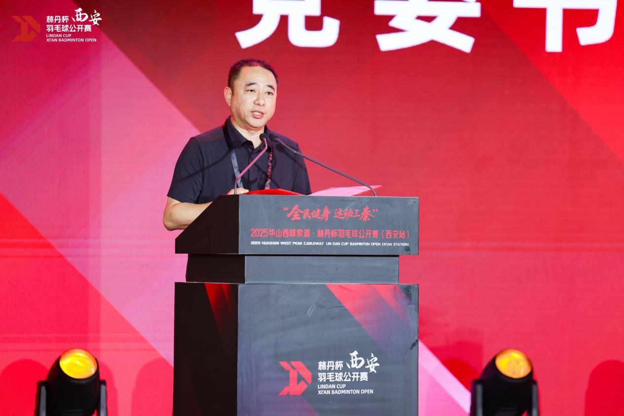 开幕式上,陕西省体育产业集团有限公司党委书记、执行董事高勤银致欢迎辞,本届林丹杯落户西安,正是陕体集团贯彻落实“文体旅深度融合”战略的生动实践。作为赛事承办方,陕体集团将以高度的责任感和使命感,确保赛事高效顺畅运行,为观众呈现精彩纷呈的赛事,向世界展示陕西体育的办赛水准与西安城市的开放胸怀。