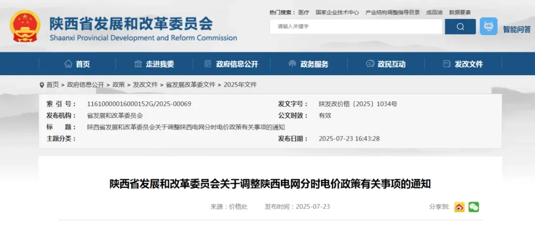 7月23日,陕西省发展和改革委员会官网发布关于调整陕西电网分时电价政策有关事项的通知。