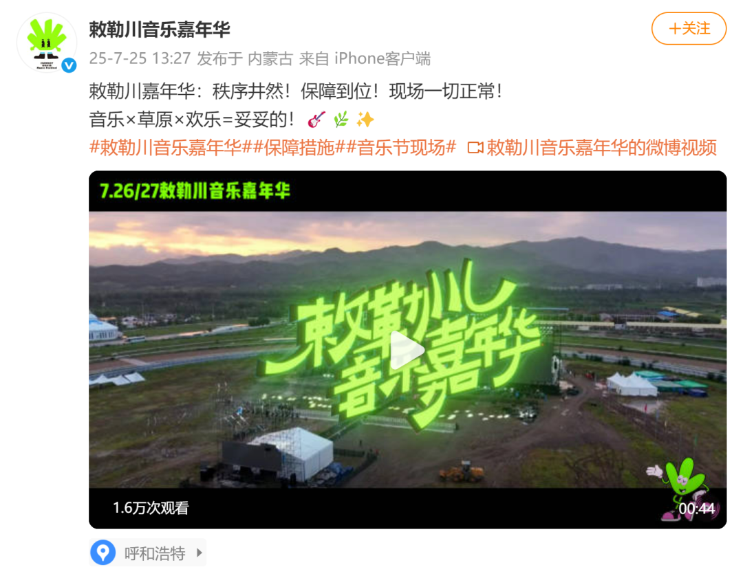 25日,音乐节官博还发文称“秩序井然!保障到位!现场一切正常!”