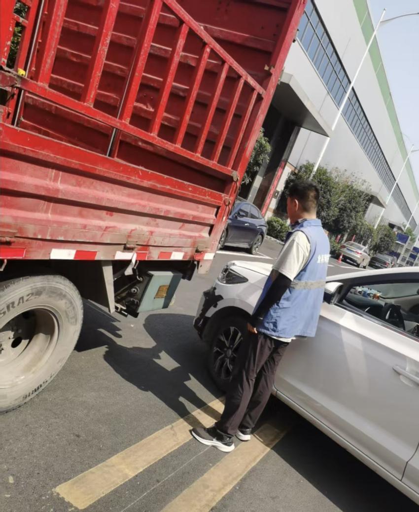 面对剑拔弩张的局面和持续加剧的拥堵,网格员小贾通过“三步走”精准施策,高效化解矛盾。“大姐,车坏了能修,气坏身体不划算”。“大哥,倒车时得多留意四周,对方鸣笛也是提醒您。”贾航波递上水,几句贴心劝导如同“灭火剂”,让原本怒目相对的两人情绪逐渐平复。随后,贾航波立即拨打122报警,同步联系园区物业保安:“西门路口事故,急需疏导交通!”随后,他站到车流前方引导:“大家稍等,交警马上到!请配合挪动车辆腾出空间!”保安迅速到场,与贾航波合力指挥疏导,拥堵的车流开始缓慢“解冻”。交警抵达后,贾航波主动上前,清晰指认刹车痕、碎片散落位置等关键痕迹,协助还原事故现场,并配合完成双方信息登记、取证及责任认定工作。经交警调解,双方司机很快就车辆维修事宜达成共识,同意前往指定地点处理。货车司机主动致歉,女司机也表示谅解。