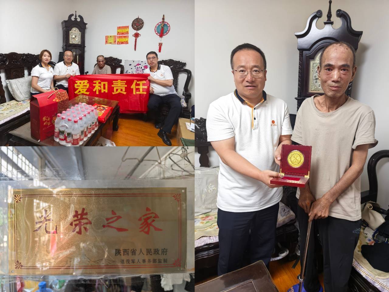 在庆祝中国人民解放军建军98周年之际,阳光人寿陕西分公司及所属延安中支于8月1日建军节当天,分别组织开展了主题慰问活动,向革命老前辈和困难退伍军人致以崇高的节日问候与深切关怀,以实际行动弘扬拥军优属光荣传统,践行企业社会责任。