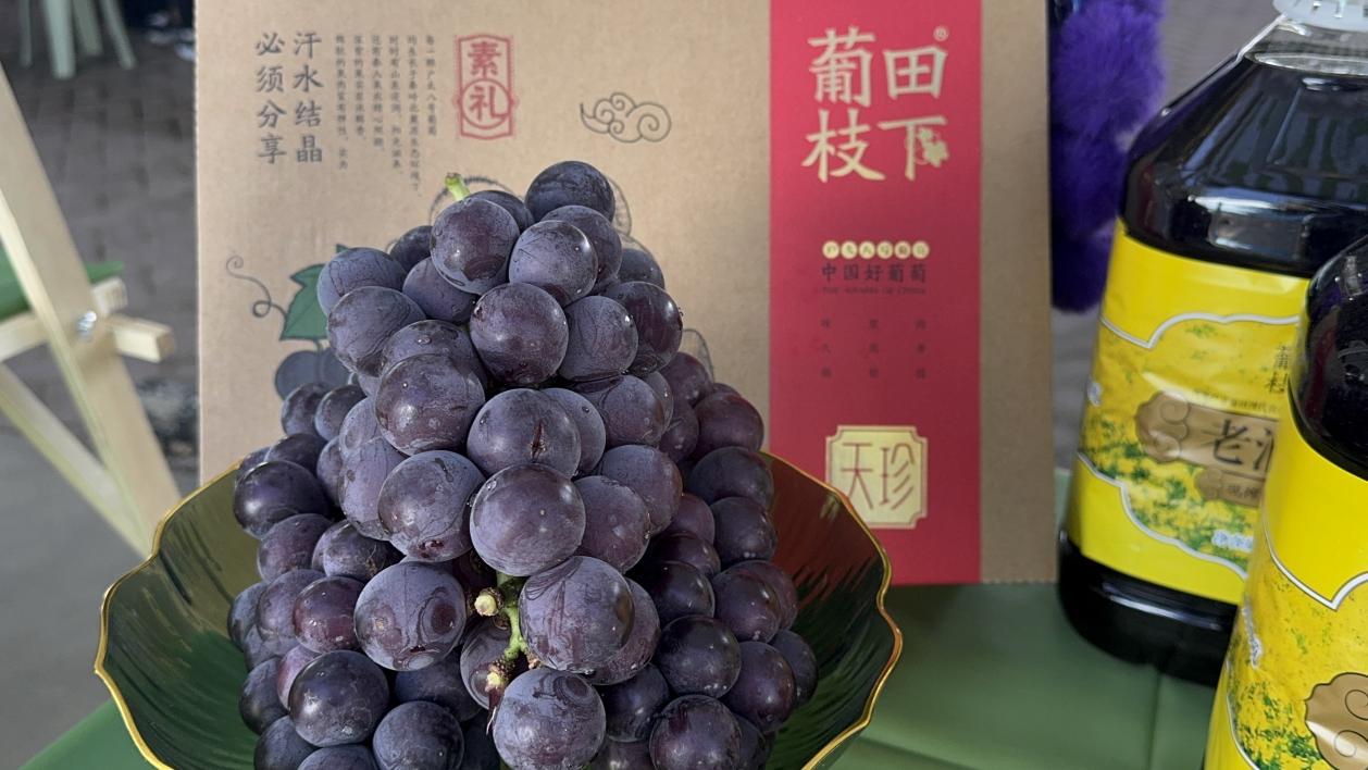 随着开园锣声响起,游客们手提竹篮走进藤蔓交错的种植区,亲手采摘阳光玫瑰等当季鲜果。汉服姑娘穿梭园中为果农拍摄特色宣传照,无人配送车在现场演示智慧物流技术。葡萄体验馆内,十余种新品种葡萄在展台陈列,专业技师示范真空锁鲜技巧;直播间里主播们正通过镜头向全国网友推介“丝路甜源”葡萄。