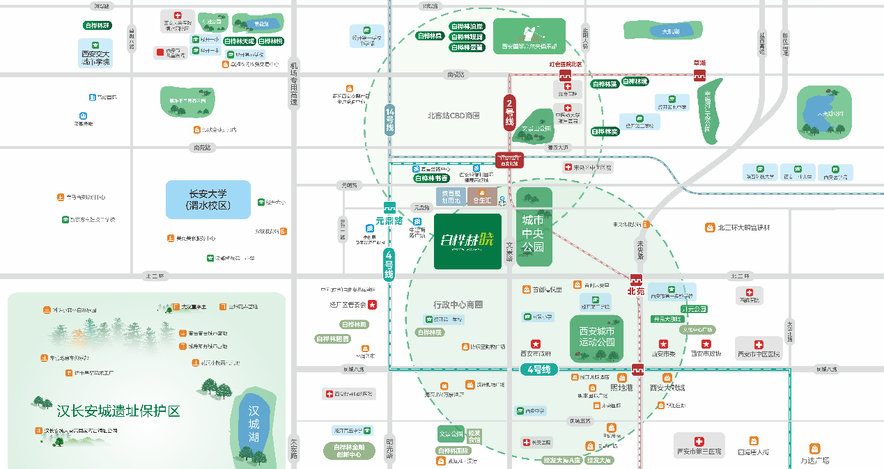 交通动脉贯通四方,高铁北客站、三条高效地铁线路与密集高速路网编织出强大的交通骨架,20分钟直抵西安咸阳国际机场,构建起便捷高效的都市生活圈。