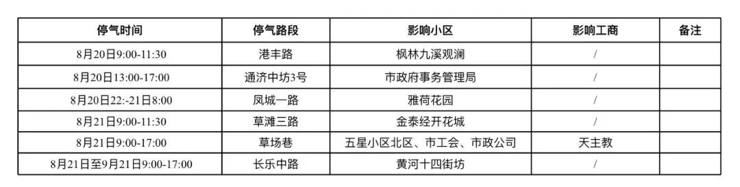 因燃气管网老化更新改造项目及燃气管道施工维护需要,秦华燃气集团定于2025年8月20日至8月21日对以下区域暂停供气,具体停气明细如下: