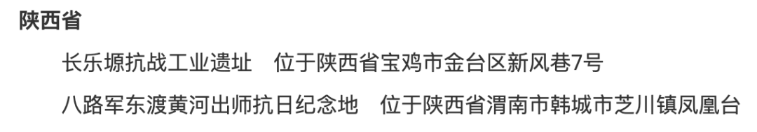 陕西省多处入选