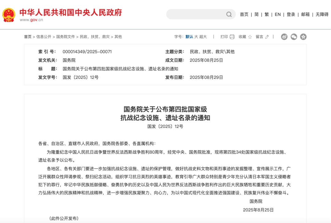 “国家级抗战纪念设施、遗址名录”