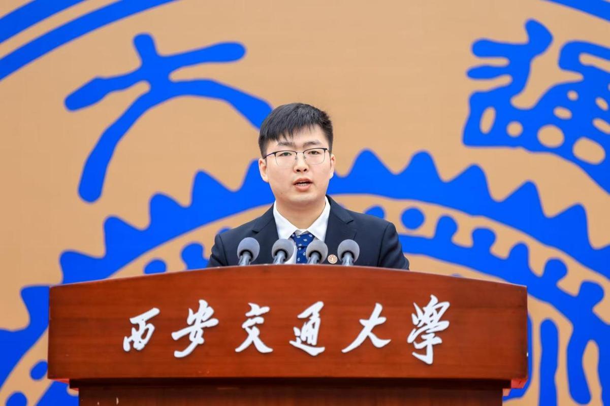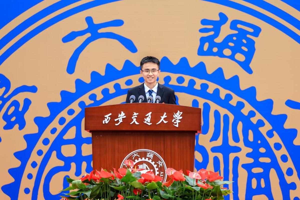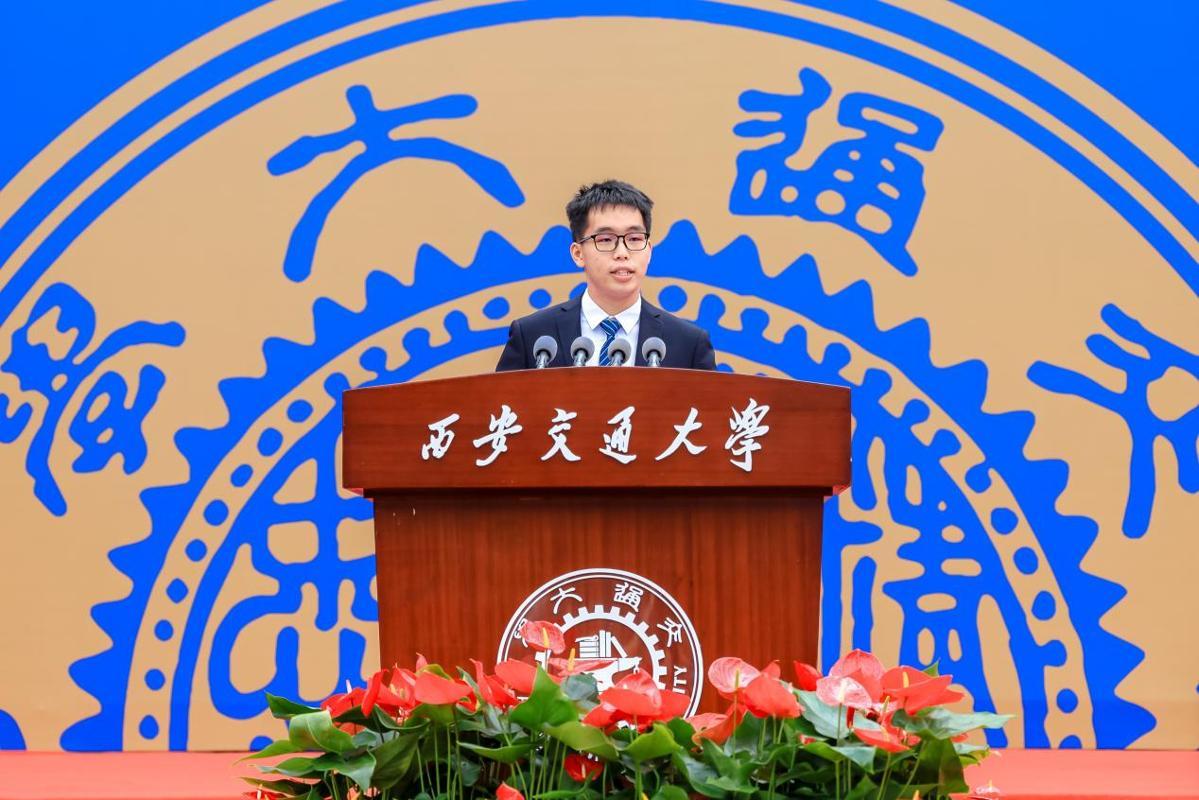 高年级学生代表,来自能动学院、彭康书院的邓官正分享了自己三年前初入校园时的期待以及在交大不断探索成长的经历。他表示,学校为每一位学生提供了广阔舞台——无论是科研创新、“一站式”社区活动,还是“攀登计划”“星航计划”等实践平台,都能让大家的兴趣和梦想茁壮成长,学弟学妹们要勇敢尝试、坚定探索,在西安交大书写属于自己的精彩青春。