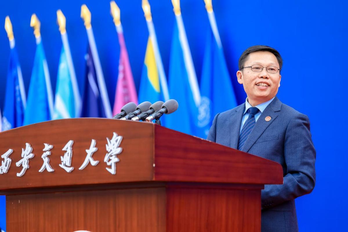 他表示,从南洋公学“兴学强国”的爱国情怀,到“听党指挥跟党走”的西迁精神,从新时代服务西部大开发形成新格局,到服务强国建设、民族复兴伟业,交大人的责任使命与家国情怀得到了充分而生动的诠释。明年即将迎来学校130周年华诞,同学们选择了交大,就是选择了爱国奉献的使命责任、做人做事的价值追求和全面发展的综合素质。希望同学们弘扬优良传统,将百年交大校训融入血脉,刻苦学习、全面发展,做到精勤求学、敦笃励志、果毅力行、忠恕任事,争做新时代西迁精神的新传人。同时,要珍惜同窗情谊、感恩师长培育,在胸怀理想的同时脚踏实地,努力实现德智体美劳全面发展。