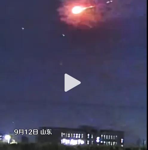 9月12日,山东潍坊,多名网友发布视频表示: 夜晚看到“不明飞行物被击落”。有目击者称听到两声巨响,正在下雨以为打雷。
