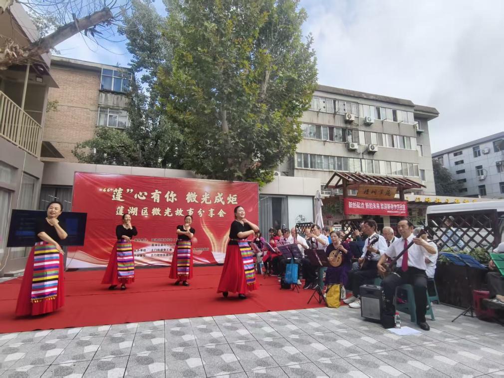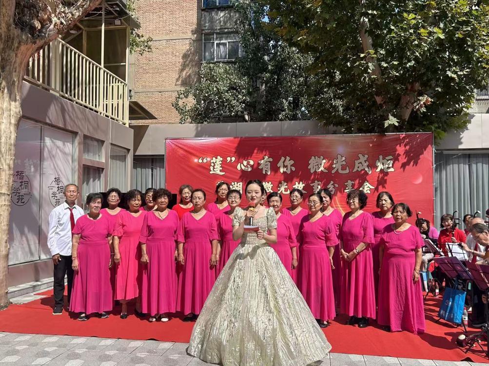 平凡微光,照亮生活。为发掘身边温暖力量,传递文明新风,9月12日上午,由莲湖区委宣传部(文明办)与土门街道联合主办的“微光故事分享会”在土门坊社区梧桐苑日间照料中心温情举行。活动以“‘莲’心有你 微光成炬”为主题,通过“身边人讲身边事”的方式,分享温暖真实的“微光时刻”,让平凡善举被看见、被传递、被铭记。莲湖区各街道新时代文明实践所代表、微光人物代表、社区艺术团成员以及党员群众代表等50余人共同参与活动。