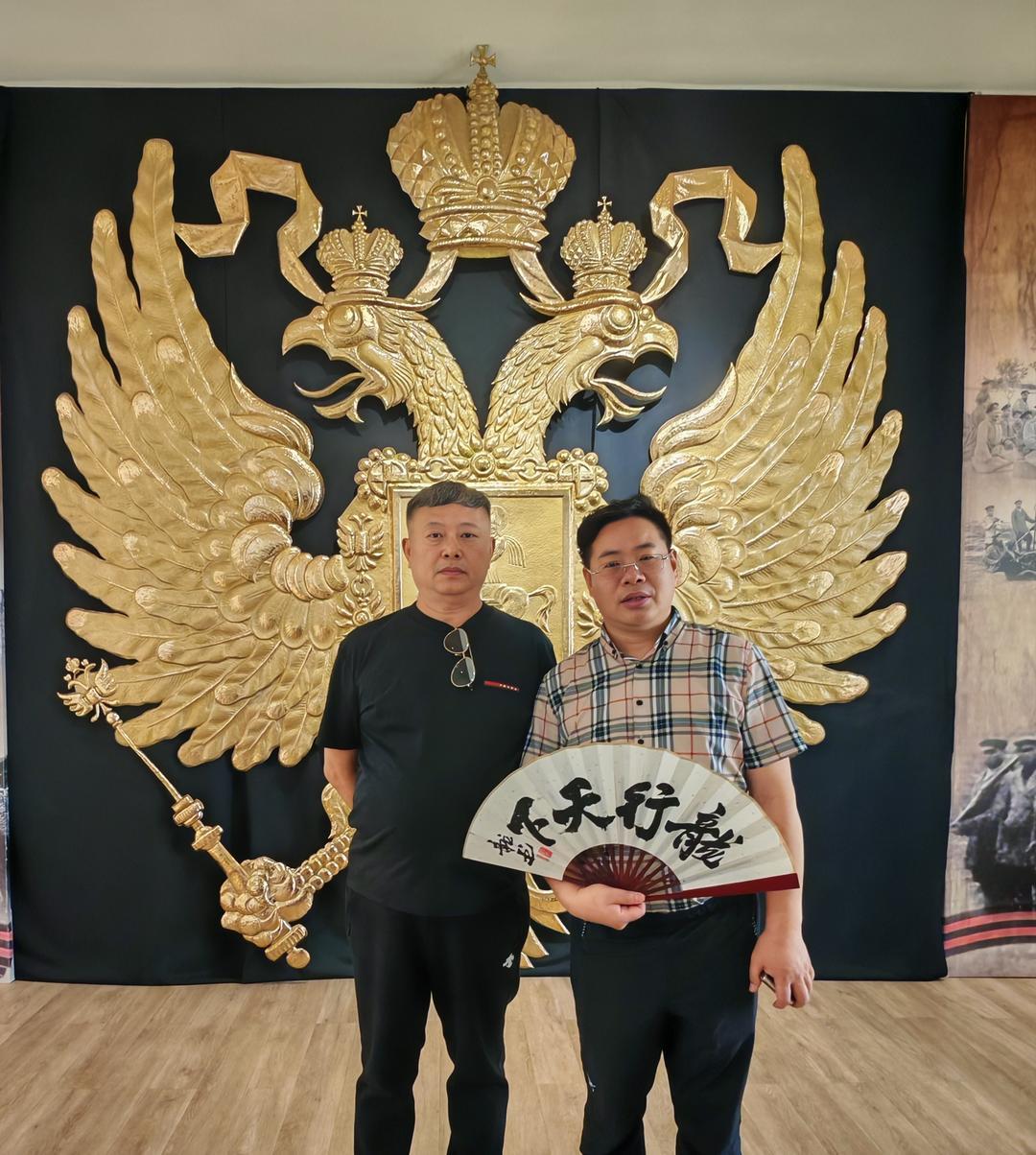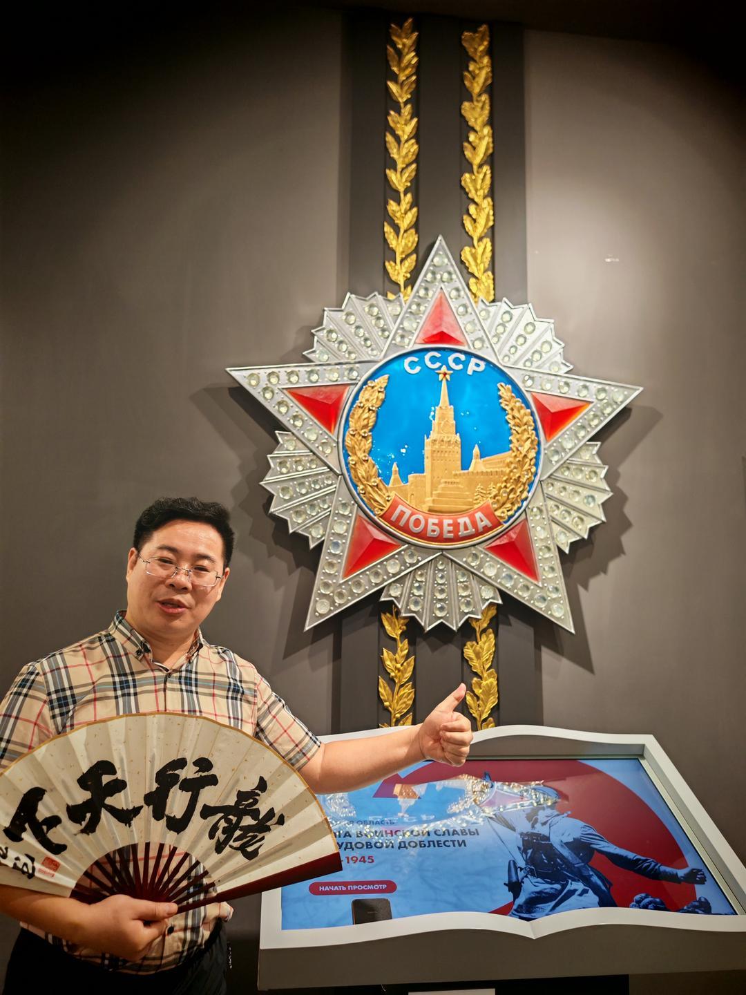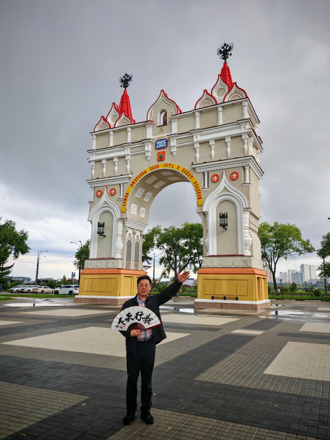 饮食与夜景是感受城市烟火的最佳方式。舌尖与眼底的体验,最是贴近一座城市的温度。我们品尝了俄罗斯特色美食:麦香浓郁的列巴、咸香醇厚的红肠、酸甜暖胃的红汤,地道风味里满是异国风情;晚间漫步于城市街头,欣赏着布拉戈维申斯克的江景夜色——江的对岸便是祖国黑河的璀璨灯火,两国城市隔江相望、交相辉映,这份独特的景致让人心生感慨。在胜利广场的凯旋门前,文化学者张龙即兴演唱改编版的《苹果香》,熟悉的旋律引得现场互动不断;张龙还以模仿伟人声音演绎经典话语,为此次行程增添趣味记忆点。作为文化学者与书法家,张龙更专程为此次中俄文化交流题赠“中俄友情万年长”“中俄一家亲”“情系俄罗斯”“龙行俄罗斯”“布拉戈维申斯克”等多幅书法作品,笔墨间饱含对两国友谊的美好期许,这些作品被一一赠予俄罗斯友人,以中国传统书法艺术传递深厚情谊。