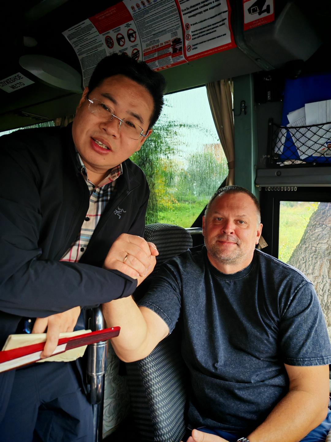此次行程的顺利推进,离不开两位“暖心搭档”的助力。交流团导游黄立祥来自黑河,他对中俄两国文化及当地情况熟稔于心,讲解细致入微,为行程提供了专业且贴心的服务,是中俄跨境游的优质选择;俄罗斯本地司机帕夏则以幽默正直的性格与大家打成一片,行程中,张龙与帕夏用中俄双语共同唱响经典歌曲《喀秋莎》,欢快的旋律中满是跨国友谊的温暖。返程前,在黄立祥的带领下,交流团还前往当地两大购物中心选购特产,同行人员满载而归,为此次俄罗斯之行增添了满满的“烟火气”。