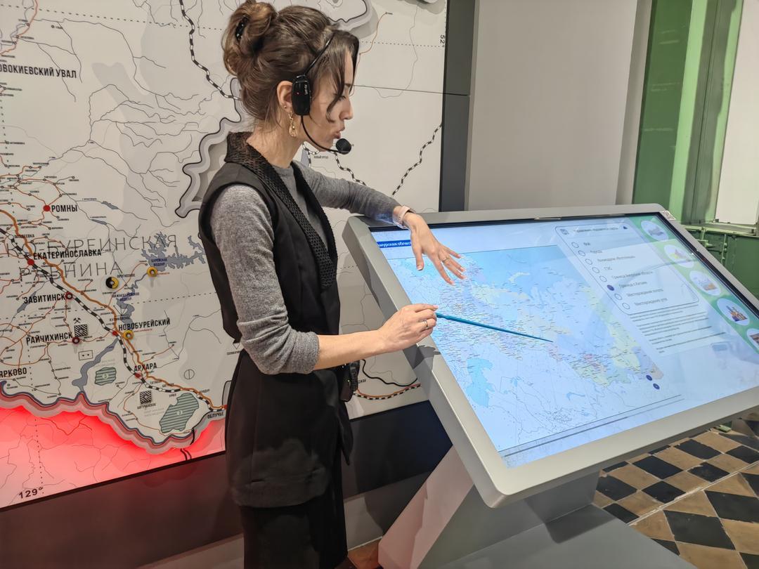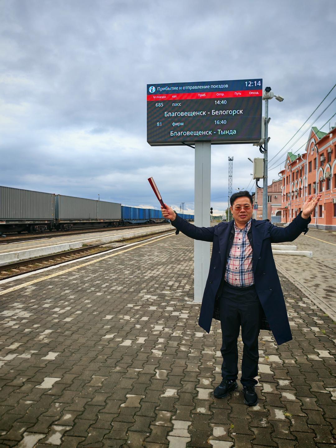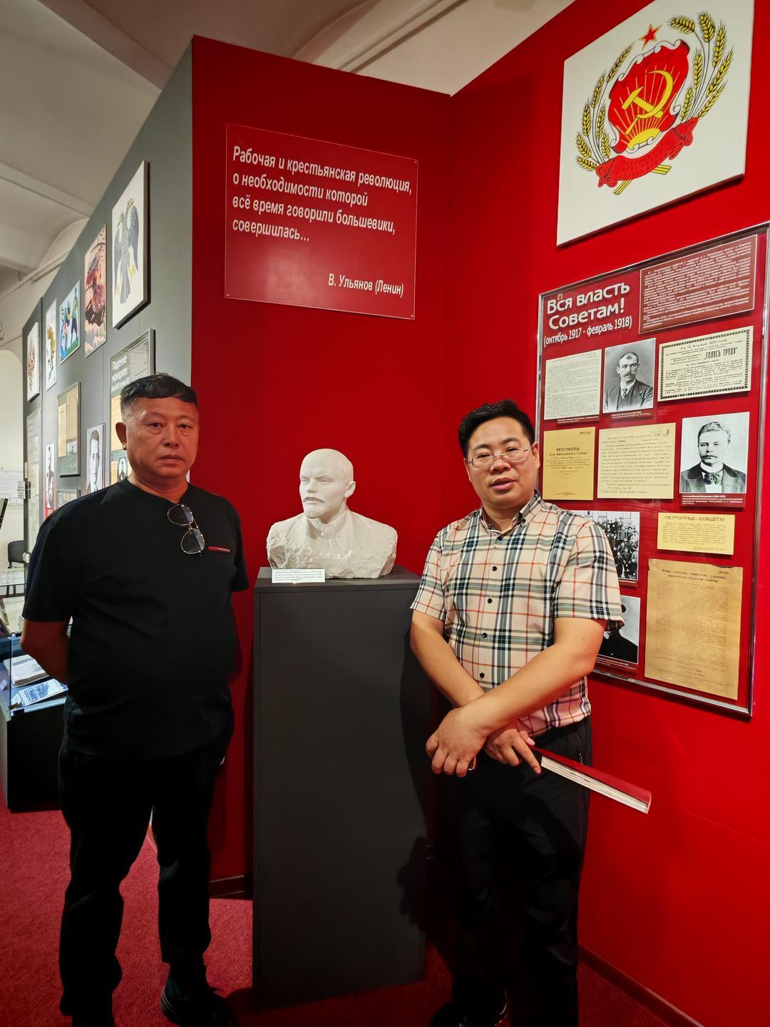 交流团从黑河口岸出发,渡江后正式开启布拉戈维申斯克之行。在当地,一行人先后走访了布拉戈维申斯克火车站、胜利广场、列宁广场及阿穆尔州地质博物馆,沉浸式感受这座城市的历史脉络与人文底蕴。在阿穆尔州地质博物馆内,一位优雅的俄罗斯讲解员凭借流利的中文与渊博学识,为交流团细致解读馆内藏品,从地质演变到人文故事,让大家对阿穆尔州的自然与文化有了深刻认知,讲解结束后,双方合影留念,定格下跨越语言的友好瞬间。