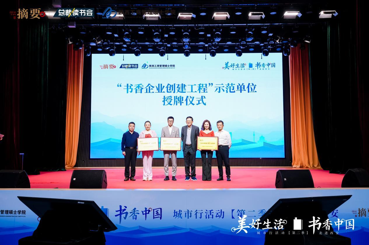 本次活动还举行了总裁读书会与凤凰网陕西频道的战略签约仪式,总裁读书会创始人、总裁读书会全国领读者联盟理事长刘世英,凤凰网陕西 CEO 张怀宇,共同签署了这份承载着文化使命与发展愿景的战略合作协议,未来双方将携手推动中东双招双引产业合作。活动还为多家“书香企业创建工程”示范单位代表举行了授牌仪式。
