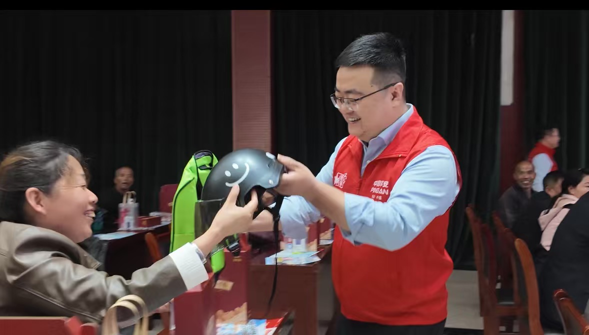 平安产险陕西分公司理赔专家围绕“一老一少”群体,针对性普及交通安全知识:针对老年人,讲解如何安全过马路、识别车辆盲区;针对儿童,生动演示安全乘车、佩戴头盔的重要性。现场还发放《安全文明出行》宣导折页,通过图文并茂的形式向村民普及佩戴头盔的好处、老人儿童出行安全常识等实用指南,进一步强化群众"知危险、会避险"的交通安全意识。平安志愿者还现场为村民车辆免费粘贴反光标识,提升夜间行车安全。