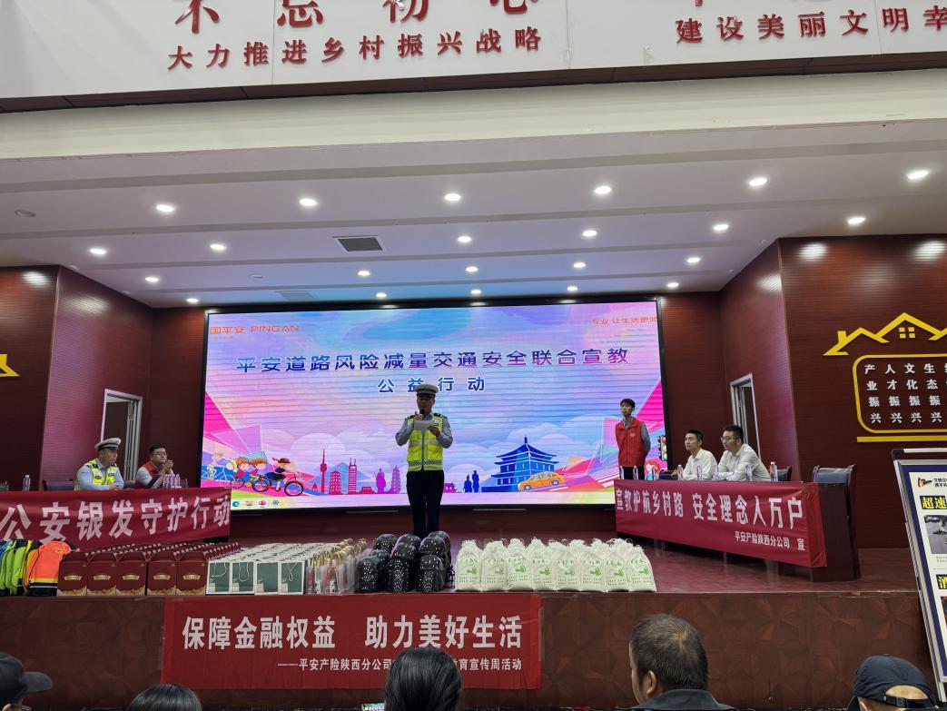 为深入贯彻乡村振兴战略,助力农村道路交通安全治理,9月19日,平安产险陕西分公司联合蓝田县公安局交通管理大队,在蓝田县董岭村开展“宣教护航乡村路,安全理念入万户”主题宣教活动。蓝田县公安局交通管理大队领导李强、影视城中队中队长刘博,平安产险陕西分公司消费者权益保护部经理党鹏、西安中心支公司运营总詹国庆等出席活动,与村民共同参与这场生动的安全教育实践。