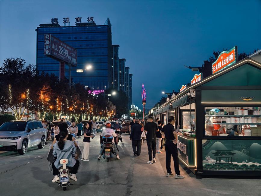 据了解,该项目于今年8月中旬开工建设,历时1个月,对长约334米,宽约16米,总用地面积约 5344 平方米的秦景南路夜市进行了提升改造,改造门头牌匾1个,架设路灯8盏,制作美陈6个,敷设电缆和污水管网300米,搭建雨棚60个,购置餐车60辆,同时,还改建文化活动展演舞台1座,不断完善夜市基础设施建设,吸引市民和游客前来。