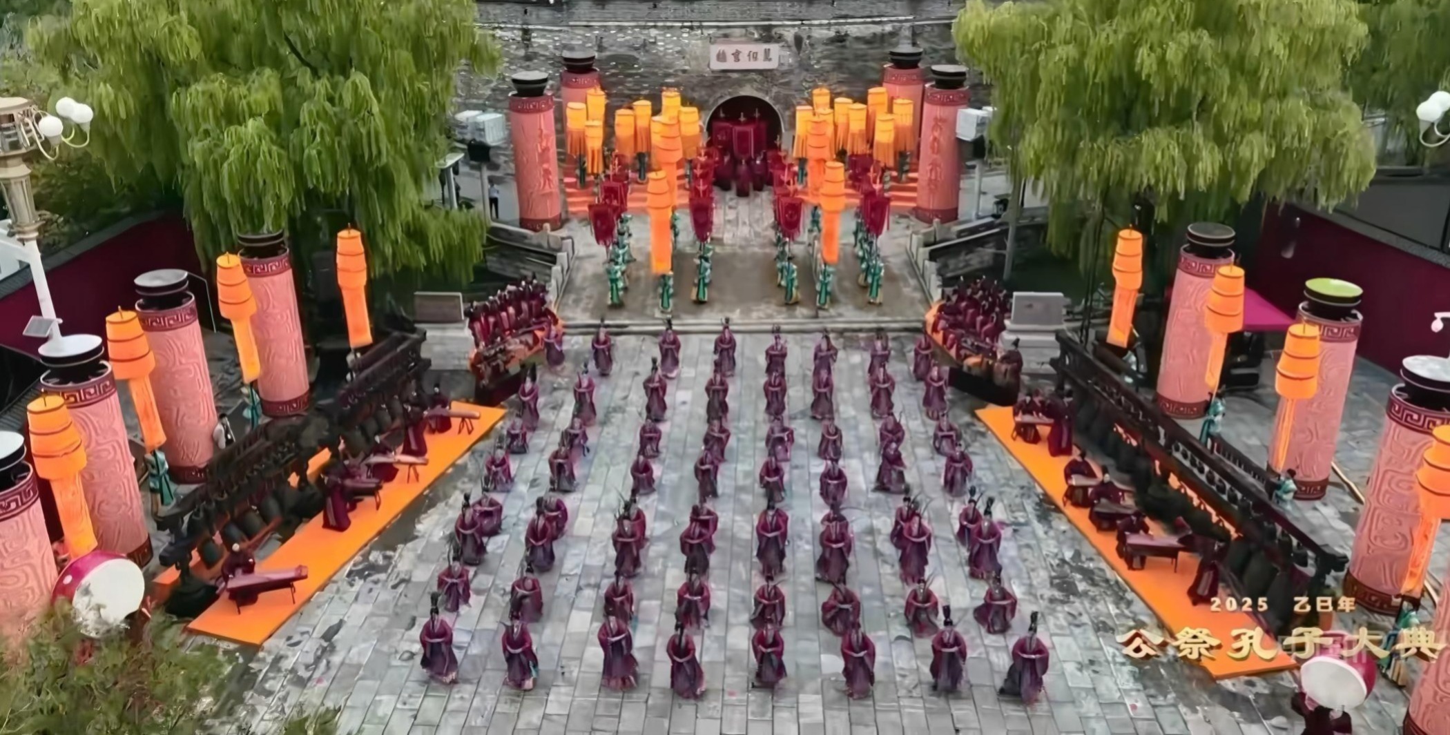 这套由西安外事学院理事长、校长黄藤敬献的编钟,作为开篇环节编钟乐舞《金声玉振》的核心元素,引领参祭嘉宾步入深厚的文化情境。其壮观的形制与典雅的乐音相结合,以礼乐融合的表演形式,构成了仪式的首个高潮。乙巳年公祭孔子大典总导演周长征介绍,开城仪式是祭孔大典情感基调的“定音锤”,此举旨在让千年儒家文化在当下真正“活”起来,不仅是对中华优秀传统文化的尊重与认同,更是文化自信的生动表达。