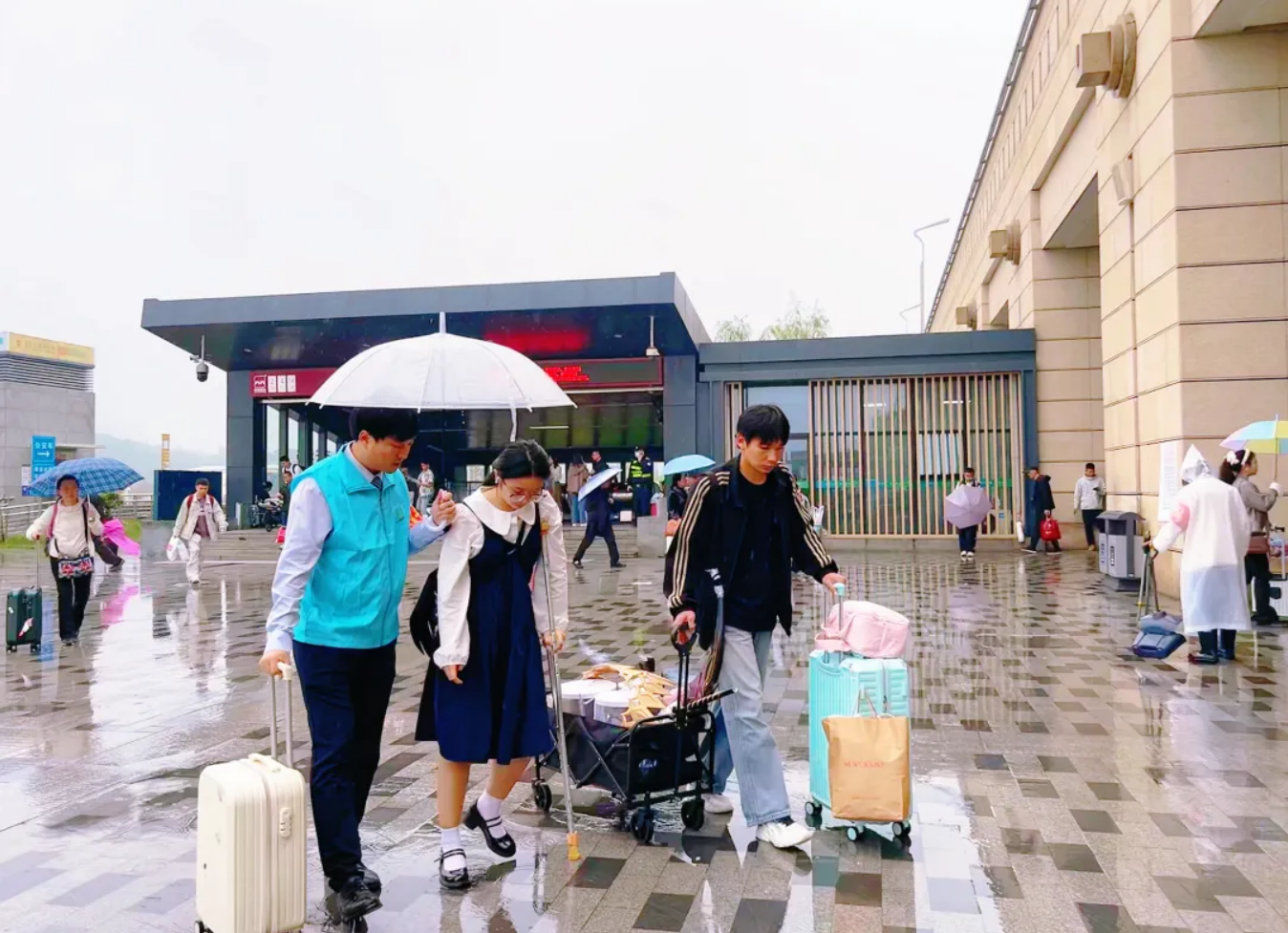 金秋虽时常雨落,西安北站却以一片赤诚,将寒意化为温情。每一句问候、每一次引导、每一场互动,都成为出行途中温暖的注脚。在熙攘人流与潮湿雨雾中,西安北站服务中心工作人员坚守工作岗位,以脚步践行责任,以专业构筑屏障,以热情驱散寒意,为每一位旅客搭建起跨越风雨的“暖心桥”,默默守护旅客的来路和归途。