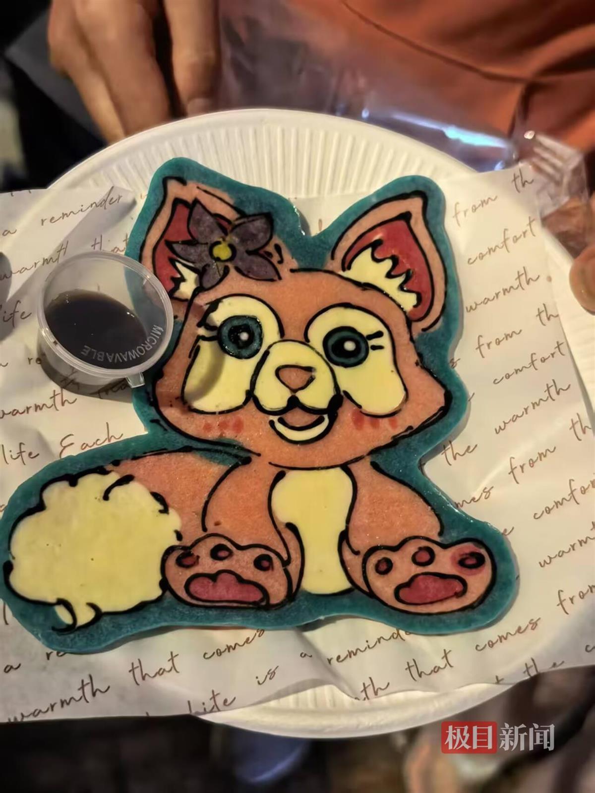 李女士表示,她定制的图案是自己喜欢的歌手的卡通形象,65元一个,拿到煎饼的一刻,情绪价值拉满,觉得等待再久也值得了。女儿想直接吃掉卡通煎饼,她则想将这个煎饼保存下去。