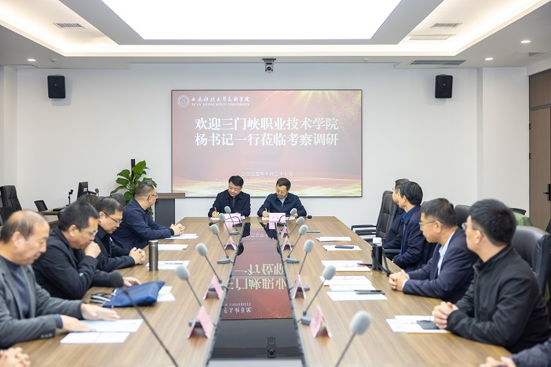 2025年10月27日,三门峡职业技术学院党委书记杨彤率队,副院长彭博、党委委员兼副院长员莹、院长助理李启松等领导一行,赴我院开展考察调研活动。西安科技大学高新学院董事长孙龙杰、副院长王福豹、王国良,院长助理胡秋实、办公室主任王智荣等领导,及陕西航天意德高科技产业有限公司、西安西科节能集团有限公司等企业代表参与此次交流,双方围绕教育发展、校企合作、产教融合等领域深度联动,共探发展新路径。