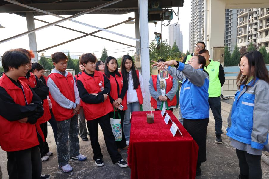 “大家看,这是刚进入处理厂的污水,浑浊不堪,还带有异味,这是经过一系列处理后的出水,清澈透明,各项指标都符合国家标准。”讲解员现场展示的两瓶水样对比,让师生们惊叹不已。
