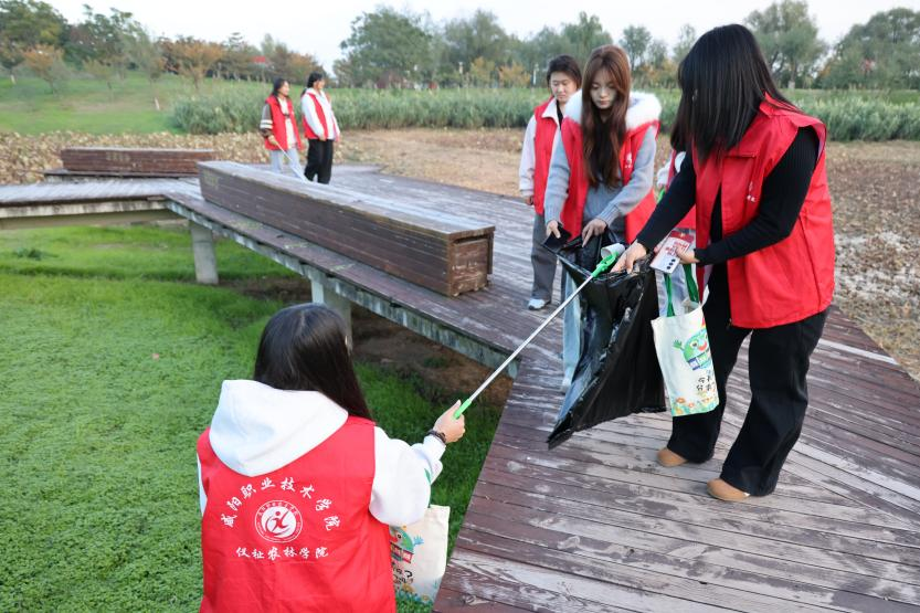 夕阳洒在波光粼粼的河面上,岸边芦苇随风摇曳,偶有水鸟掠过水面……在掌握垃圾分类与水环境治理知识后,师生们来到渭柳湿地,开启一场“净滩”实地行动。