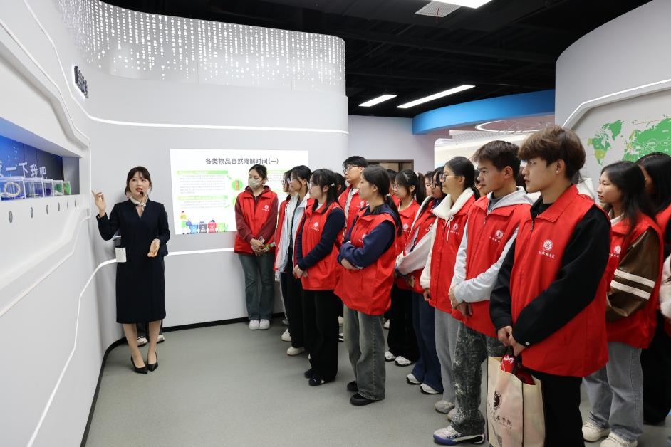 讲解员通过影像资料、图文展板、实物模型、互动游戏等多种形式,向师生们系统讲解了垃圾分类的政策背景、分类标准、处理流程及资源再利用价值。从可回收物如何“变废为宝”,到有害垃圾的专业处置流程,再到厨余垃圾的资源化利用案例,每一个知识点都通过生动直观的方式呈现。