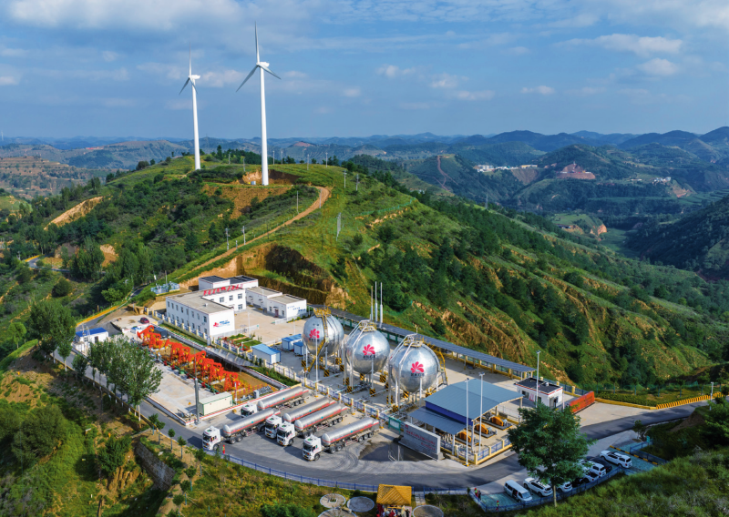 鸟瞰延长石油CCUS项目油田二氧化碳注入工程现场(2025年8月25日摄) 受访者供图