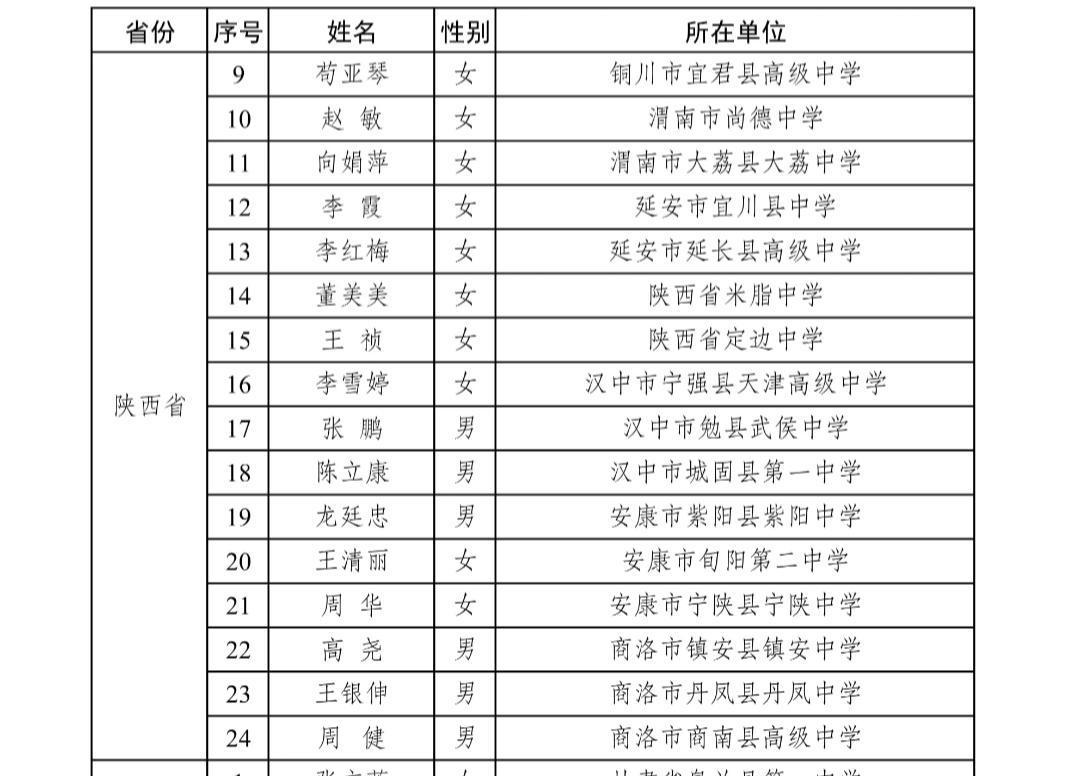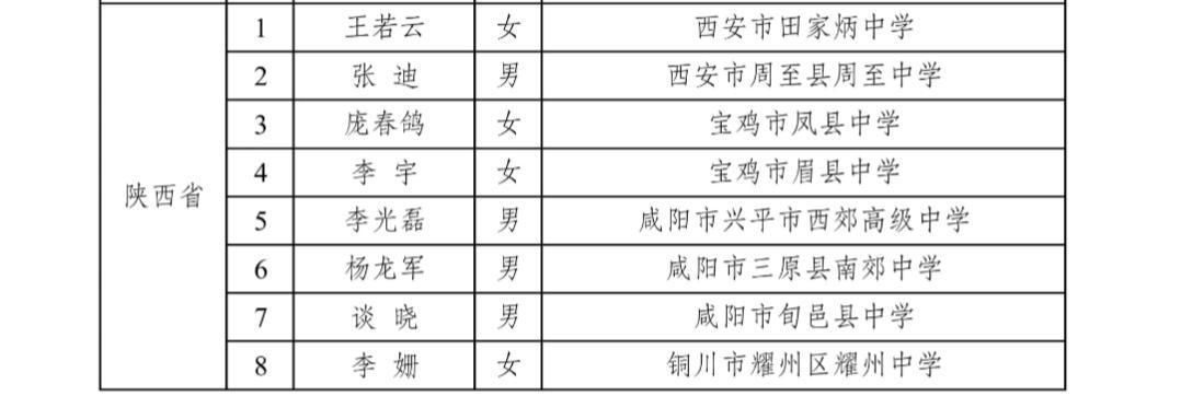 记者获悉,此次陕西入选全国首批县域普通高中头雁教师岗位的教师具体如下: