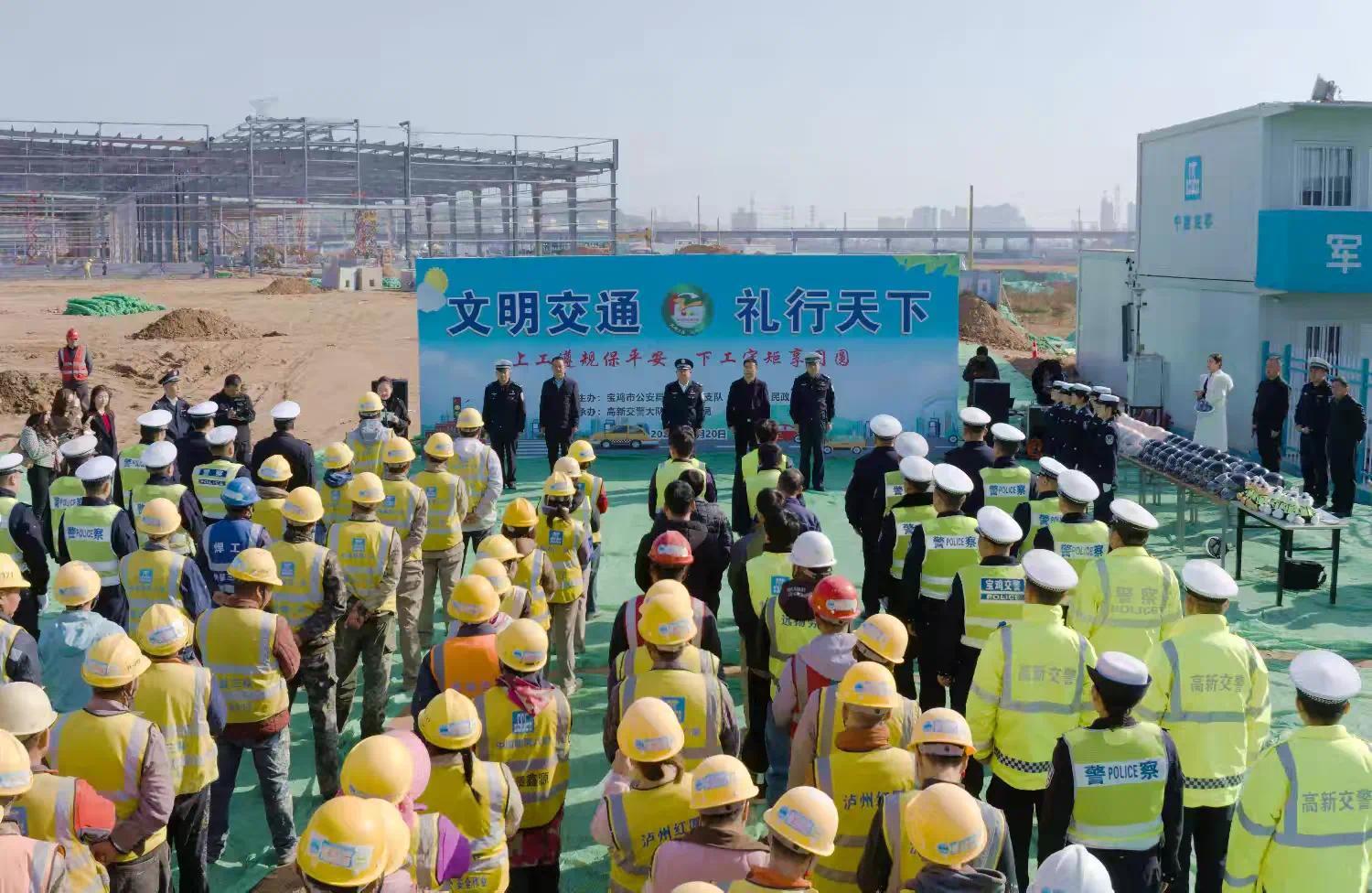 11月20日,宝鸡市公安局交警支队联合陈仓区人民政府,在中国供销宝鸡农批城项目工地开展“关注民工平安行,交通安全进工地”主题宣传暨头盔发放仪式,现场向建筑工人赠送100顶安全头盔及交通安全手册。