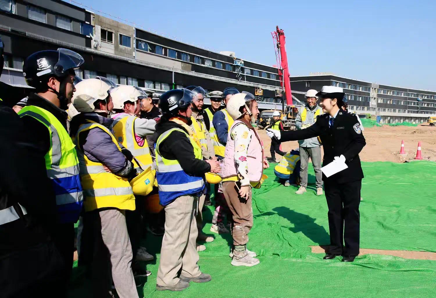 宝鸡交警走进工地,为工友送上“头顶安全”