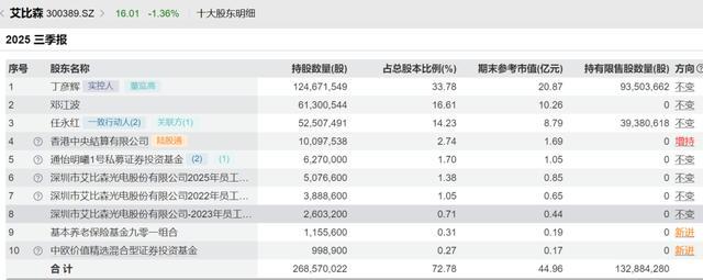 最新财报显示,丁彦辉直接持有公司股份12467万股,占公司总股本的33.78%(市值约19.96亿元),是公司的实际控制人。