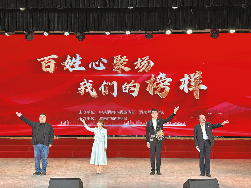 为深入学习贯彻党的二十届四中全会精神和《中国共产党思想政治工作条例》,凝聚起加快文化强市建设的强大精神力量,12月2日上午,2025年“百姓心聚场我们的榜样”主题活动在渭南师范学院举办。4位来自基层一线的先进典型相继亮相,他们用一个个质朴却动人的故事,深刻诠释了平凡岗位上的坚守与奉献,这些源自实践、充满泥土芬芳的讲述,于细微处见真情,于平凡中显伟大,深深打动了现场观众。